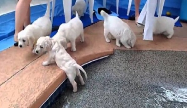 Oκτώ μικρά λαμπραντόρ κολυμπούν για πρώτη φορά