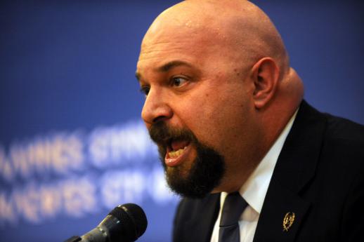 “Το άρθρο 52 του Συντάγματος λέει η ελεύθερη και ανόθευτη εκδήλωση της λαϊκής θέλησης, ως έκφραση της λαϊκής κυριαρχίας τελεί υπό την εγγύηση όλων των λειτουργών της Πολιτείας που έχουν υποχρέωση να διασφαλίζουν σε κάθε περίπτωση. Η Βουλή λειτουργεί με 300 βουλευτές και όχι με 294.Ξέρουμε ότι δεν θα μας θέλατε εδώ καθ΄ οποιονδήποτε τρόπο. Από την στιγμή που ο ελληνικός λαός με νωπή εντολή μας έχει κατατάξει ως τρίτη πολιτική δύναμη θα πρέπει να το σεβαστείτε. Δεν είναι δυνατόν ένας χαμηλόβαθμος εισαγγελέας να καταλύει το Πολίτευμα”.