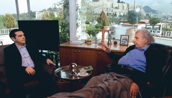 Ενενήντα λεπτά κράτησε η συνάντηση που είχε χθες το πρωί ο πρωθυπουργός Αλέξης Τσίπρας με τον Μίκη Θεοδωράκη. Ο Αλέξης Τσίπρας είχε κλείσει το ραντεβού σε τηλεφωνική επικοινωνία τους, όταν κάλεσε τον Μ. Θεοδωράκη με αφορμή άρθρο του στο οποίο ζητούσε από τον πρωθυπουργό να πει «όχι» στο «nein» του Βόλφγκανγκ Σόιμπλε.