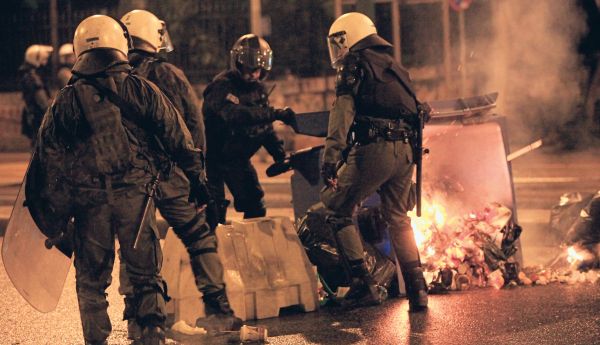 Ομάδες κουκουλοφόρων έβαλαν φωτιές σε κάδους γύρω από το Πολυτεχνείο, προκειμένου να δημιουργήσουν οδοφράγματα, ενώ πέταξαν βόμβες μολότοφ σε αστυνομικούς, οι οποίοι απάντησαν κάνοντας χρήση δακρυγόνων. Στις φλόγες τυλίχθηκε ένα αυτοκίνητο στη συμβολή των οδών Κάνιγγος και Καποδιστρίου, ενώ τουλάχιστον άλλα τρία οχήματα στην περιοχή των Εξαρχείων πυρπολήθηκαν.