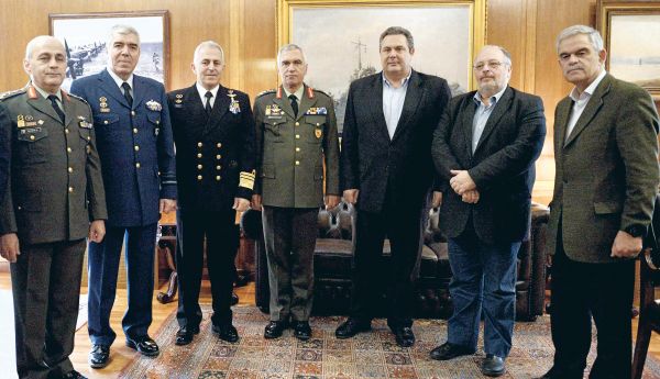 Τη στιγμή που οι Τούρκοι προκαλούσαν στο Αιγαίο, όπως προαναφέρθηκε, ο κ. Καμμένος υποδεχόταν τους τέσσερις αρχηγούς των Γενικών Επιτελείων για τις καθιερωμένες ευχές, ιδίως προς τους δύο νέους αρχηγούς, του ΓΕΣ αντιστράτηγο Βασίλειο Τελλίδη και του ΓΕΑ αντιπτέραρχο Χρήστο Βαΐτση. Στη συνάντηση αυτή ο υπουργός Εθνικής Αμυνας ανακοίνωσε την απόφασή του να μειωθεί ο αριθμός των ανώτατων αξιωματικών από τους 315 που είναι σήμερα στους 261. Κάτι βέβαια που δεν χαροποιεί ιδιαίτερα τους στρατιωτικούς.