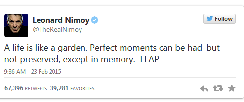 Το τελευταίο tweet του Leonard Nimoy, στις 22 Φεβρουαρίου