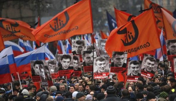 «Δεν φοβάμαι», «πέθανε για το μέλλον της Ρωσίας», «δολοφονήθηκε για μια ελεύθερη Ρωσία», «οι σφαίρες αυτές προορίζονται για τον καθένα εξ ημών» ήταν μερικά από τα συνθήματα που έγραφαν τα πανό και τα πλακάτ των διαδηλωτών, πολλοί εκ των οποίων κρατούσαν στα χέρια τους μία σημαία της Ρωσίας, ενώ φώναζαν το σύνθημα “Ρωσία χωρίς τον Πούτιν”. «Εάν μπορέσουμε να βάλουμε ένα τέλος στην εκστρατεία μίσους εναντίον της αντιπολίτευσης, τότε έχουμε μια ευκαιρία να αλλάξουμε τη Ρωσία. Εάν όχι τότε αντιμετωπίζουμε το ενδεχόμενο μιας εκτεταμένης εμφύλιας σύγκρουσης» προειδοποίησε ο Γεννάδιος Γκουντκόφ, ένας ηγέτης της αντιπολίτευσης, μιλώντας στο πρακτορείο Ρόιτερς πριν από την έναρξη των κινητοποιήσεων. «Οι αρχές είναι διεφθαρμένες και δεν θα επιτρέψουν καμία απειλή να υψωθεί εναντίον τους. Ο Μπόρις τους προκαλούσε ανησυχία» κατήγγειλε.