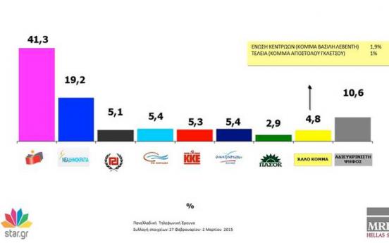 Η δημοσκόπηση της MRB πραγματοποιήθηκε τηλεφωνικά από τις 27 Φεβρουαρίου έως και τις 2 Μαρτίου σε δείγμα 1009 ατόμων για το star.gr.