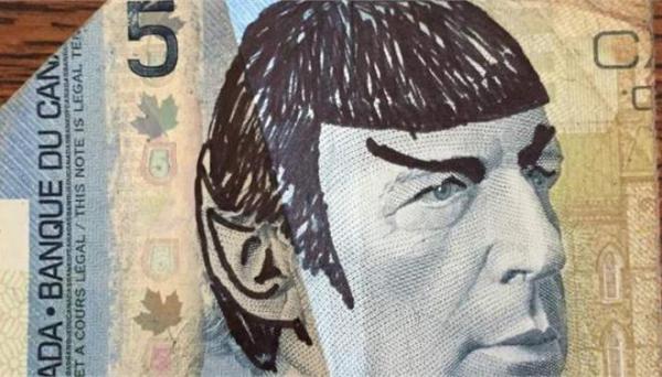 Ανέκαθεν πολλοί Καναδοί είχαν τη συνήθεια να μουτζουρώνουν το χαρτονόμισμα των πέντε δολαρίων της χώρας τους, προσδίδοντας στη μορφή που απεικονίζεται, τα χαρακτηριστικά του ηθοποιού Λέοναρντ Νίμοϊ, ο οποίος έπαιζε τον περίφημο Σποκ στη δημοφιλή σειρά επιστημονικής φαντασίας, Σταρ Τρεκ.