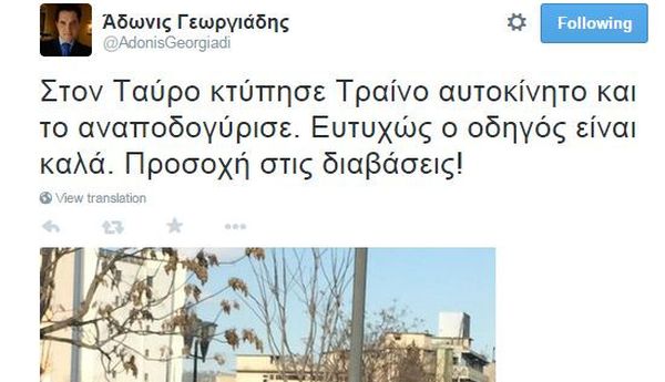 Ο Αδωνις «τουιτάρει» για τροχαίο με τρένο