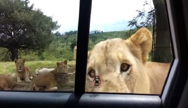 Ενώ βρίσκονταν με το αυτοκίνητο τους κοντά σε μια αγέλη από λιοντάρια, ένα από αυτά πλησίασε το όχημα. Και ξαφνικά, την ώρα μάλιστα που κάποιο από τα άτομα τράβαγε βίντεο, το λιοντάρι άνοιξε την πόρτα του αυτοκινήτου προκαλώντας πανικό.