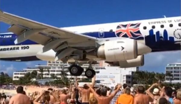 Το καθημερινό αυτό εντυπωσιακό φαινόμενο συμβαίνει στην διάσημη παραλία Maho Beach, στο νησί St Martin της Καραϊβικής. Εκεί, το διεθνές αεροδρόμιο Princess Juliana βρίσκεται πολύ κοντά στην παραλία του νησιού και τα αεροσκάφη κατά την προσγείωση μοιάζουν να αγγίζουν με τους τροχούς τους την άμμο.Μάλιστα, τα μπαρ και τα εστιατόρια κοντά στην παραλία του νησιού τοποθετούν πινακίδες με τα δρομολόγια άφιξης και αναχώρησης των αεροσκαφών για να διευκολύνουν τους τουρίστες να τα φωτογραφίζουν.