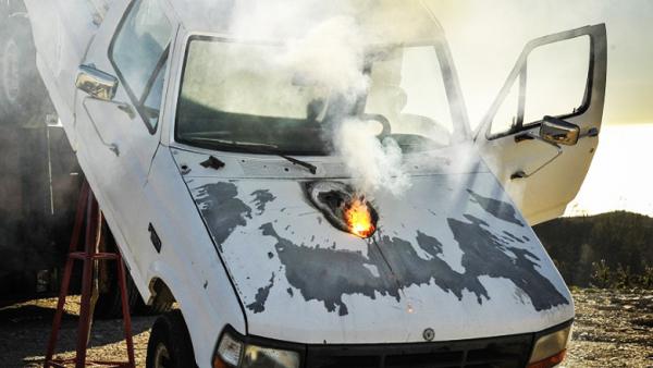 Η εταιρεία Lockheed Martin έδωσε στη δημοσιότητα μια φωτογραφία απο μια πρόσφατη δοκιμή όπου ένα υπερόπλο λέηζερ, καταστρέφει τη μηχανή ενός φορτηγού με βολή απο απόσταση μεγαλύτερη του ενός μιλίου.