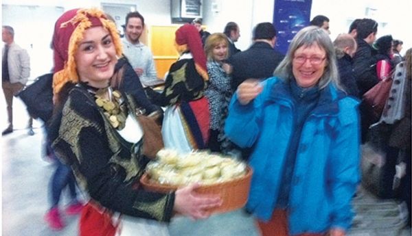 Στην αίθουσα αφίξεων του αεροδρομίου περίμεναν τους τουρίστες νεαρές κοπέλες ντυμένες με παραδοσιακές στολές, που ανέλαβαν το σερβίρισμα και έδωσαν ξεχωριστό χρώμα στην υποδοχή. Στην πτήση της Germanwings βρέθηκαν και εκπρόσωποι της Περιφέρειας Κρήτης, που συμμετείχαν στη διεθνή έκθεση τουρισμού «ITB 2015» στο Βερολίνο και προχωρώντας σε μια συμβολική κίνηση επέλεξαν να συνοδεύσουν τους Γερμανούς ταξιδιώτες, αναγνωρίζοντας την υποστήριξή τους στο νησί.