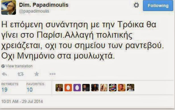 Υ.Γ. Αν δεν ήταν αληθινή η περσινή δήλωση του μάγκα και καραμπουζουκλή Παπαδημούλη θα ήταν μια πρώτης τάξεως τρολιά εκ των έσω προς την κυβέρνηση… Ιδού:
