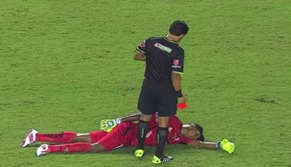 Την παράσταση έκλεψε ο τερματοφύλακας της Μπαρτσελόνα του Εκουαδόρ, Μάξιμο Μπανγκέρα, στο ματς κόντρα στην Ατλέτικο Νασιονάλ για το Κόπα Λιμπερταδόρες. Ο συμπαίκτης του Ισμαέλ Μπλάνκο ανέτρεψε έναν αντίπαλο την ώρα που έβγαινε τετ-α-τετ με αποτέλεσμα ο διαιτητής του αγώνα να τρέξει προς το μέρος του κρατώντας την κόκκινη κάρτα.