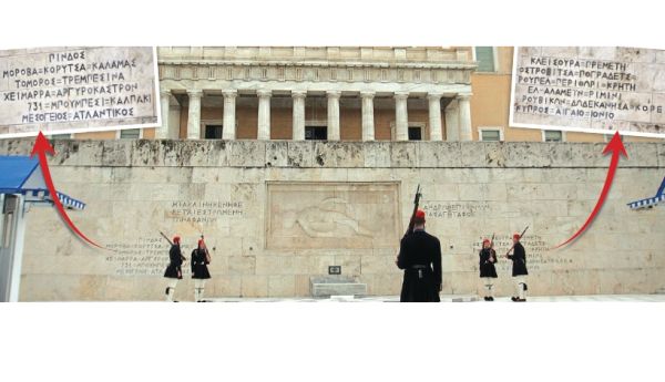 Χαράχθηκαν στο Μνημείο του Αγνώστου Στρατιώτου (που είναι έξω από τη Βουλή) τα τοπωνύμια Αιγαίο, Ιόνιο, Μεσόγειος και Ατλαντικός, για να τιμηθούν οι αγώνες του έθνους και η μνήμη των Ελλήνων πεσόντων