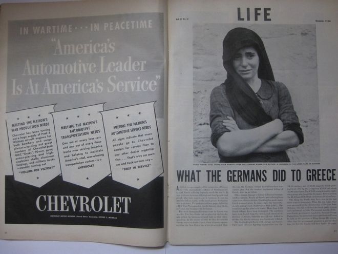 Συνέχιζα να περιεργάζομαι τα αντικείμενα μέχρι που έπεσα πάνω σε στοίβες παλιών περιοδικών Life τοποθετημένα σε ράφια και ταξινομημένα ανά δεκαετία. Κοίταξα χρονολογίες και είδα ότι υπήρχαν τεύχη ακόμα και πριν το ´50. Αυτό ενίσχυσε το ενδιαφέρον μου για τη δημοπρασία και έκανε την αναζήτηση συγκεκριμένη πλέον. Έψαξα να βρω το τεύχος με το αφιέρωμα στη σφαγή του Διστόμου. Ήξερα το έτος, 1944, αλλά όχι ακριβή ημερομηνία. Μια αναζήτηση στο κινητό μου έδωσε 29 Νοεμβρίου. Όμως όσο κι αν έψαχνα τεύχος με αυτή την ημερομηνία δεν βρήκα. Το Life ήταν εβδομαδιαίο, υπήρχαν πολλά τεύχη και τα εξώφυλλα δεν παρέπεμπαν πουθενά. Συνέχισα την αναζήτηση στο διαδίκτυο μέσω του κινητού και είδα ότι σε άλλη πηγή η ημερομηνία ήταν διαφορετική, 27 Νοεμβρίου 1944.