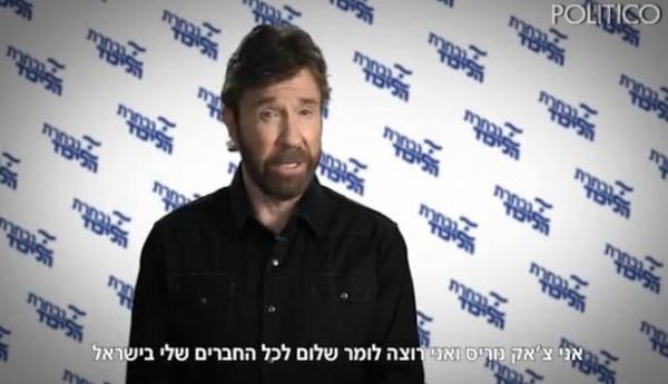 «Είδα την ομιλία του Μπενιαμίν Νετανιάχου στο Κογκρέσο και είδα έναν άνθρωπο που αγαπά την πατρίδα του με όλη τη καρδιά και τη ψυχή του. Επίσης είδα έναν ισχυρό ηγέτη, που είναι απόλυτα απαραίτητος για την ασφάλεια των ισραηλινών», λέει ο Τσακ Νόρις σε βίντεο που έχει αναρτήσει στο YouTube με τίτλο: «Παρακαλώ ψηφίστε τον πρωθυπουργό Νετανιάχου».