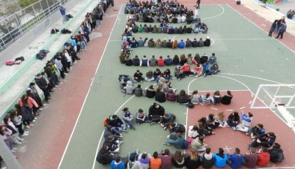 Οι μαθητές Λυκείου της Ραφήνας έστειλαν το δικό τους μήνυμα για όλα όσα έγιναν σχηματίζοντας στο προαύλιο με τα σώματά τους το όνομα “Βαγγέλης”.