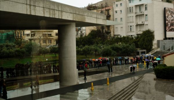 Με αφορμή την αργία της 25ης Μαρτίου, η είσοδος σήμερα στο μουσείο ήταν ελεύθερη. Ετσι, παρά τη βροχή, ουρές σχηματίζονταν στην είσοδο και μέσα στο μουσείο.