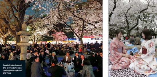 Στην Ιαπωνία αυτές τις ημέρες όλα σταματούν για το hanami. Τα στελέχη και οι υπάλληλοι των εταιριών βγαίνουν στα πάρκα για να γιορτάσουν την άνοιξη, οι μαθητές του δημοτικού κάνουν βόλτες κάτω από τα ολάνθιστα κλαδιά, ζευγάρια ντύνονται παραδοσιακά με κιμονό και οι πολίτες πάνε στη δουλειά ή για ψώνια κοιτάζοντας πάντα ψηλά, περπατώντας κάτω από ένα σύννεφο μπουμπουκιών. Οι κερασιές ανθίζουν και οι Γιαπωνέζοι, όπως κάθε χρόνο, είναι πολύ συνεπείς στο ραντεβού τους με τη φύση…