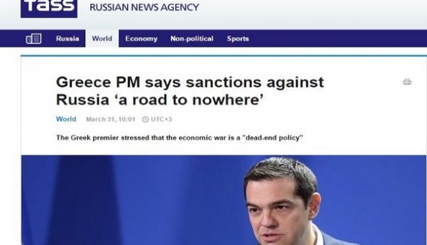 Αναφερόμενος στο θέμα των κυρώσεων, ο Α.Τσίπρας ξεκαθάρισε ότι η Ελλάδα δεν συμφωνεί με τις δυτικές κυρώσεις κατά της Ρωσίας και θύμισε το περιστατικό κατά την ανάληψη των καθηκόντων της νέας κυβέρνησης, όταν ο πρόεδρος του Ευρωπαϊκού Συμβουλίου Ντόναλντ Τουσκ «θεωρούσε σχεδόν ως δεδομένη τη θέση της Ελλάδας υπέρ των κυρώσεων».