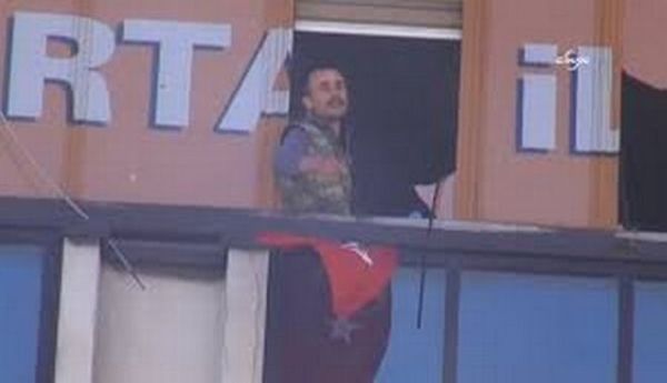 Ο άνδρας έσπασε παράθυρα στο ψηλότερο όροφο του κτιρίου στη συνοικία Καρτάλ, στην ασιατική πλευρά της Κωνσταντινούπολης, και κρέμασε μια τούρκικη σημαία στην οποία φαίνεται να έχει προστεθεί ένα λευκό σπαθί. Μάλιστα φαίνεται φώναζε κατά διαστήματα προς το πλήθος που είχε συγκεντρωθεί από κάτω, αλλά ακόμα δεν έχει διευκρινιστεί τι έλεγε.