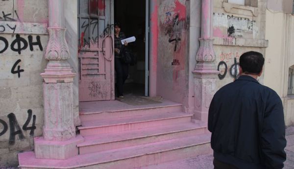 Η πόρτα των δικαστηρίων έγινε ροζ. Όχι, δεν πρόκειται για μία προγραμματισμένη εργασία των ειδικών συνεργείων για αλλαγή χρώματος των δικαστηρίων αλλά για… βανδαλισμό.