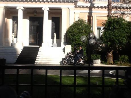 Λίγο πριν τις 6 αποχώρησαν μαζί από το Μέγαρο Μαξίμου ο υπουργός Οικονομικών Γιάνης Βαρουφάκης και ο αναπληρωτής υπουργός Εξωτερικών Ευκλείδης Τσακαλώτος. Οι δύο άνδρες δεν έφυγαν… με τον συνηθισμένο τρόπο των άλλων υπουργών, δηλαδή με τα υπουργικά αυτοκίνητα, αλλά με τη μηχανή του κ. Βαρουφάκη.