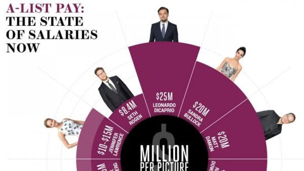 Μέσα από έρευνα που έγινε σε παραγωγούς, πράκτορες, και διευθυντές παραγωγής, σημειώνεται ότι τουλάχιστον 6 ηθοποιοί του Χόλιγουντ κερδίζουν τουλάχιστον 20 εκατομμύρια ανά ταινία, ποσό που έχουμε να συναντήσουμε από την δεκαετία του ’90, τότε που4-5 ηθοποιοί άγγιζαν τον μαγικό αυτό αριθμό (μεταξύ τους οι Κέβιν Κόστνερ, Μελ Γκίμπσον και Τομ Κρουζ).