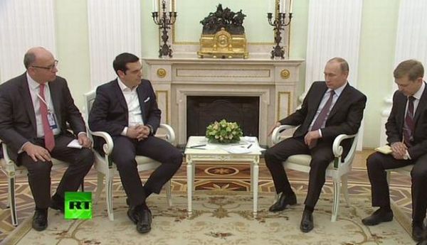 Με καθυστέρηση 40 περίπου λεπτών ξεκίνησε η συνάντηση του Έλληνα πρωθυπουργού Αλέξη Τσίπρα με τον πρόεδρο της Ρωσίας Βλαντιμίρ Πούτιν στο Κρεμλίνο.
