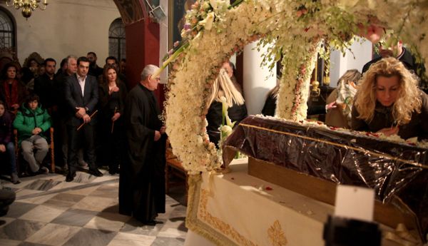 Τη Λειτουργία του Επιταφίου παρακολούθησε ο πρωθυπουργός, Αλέξης Τσίπρας, με τη σύντροφό του, Περιστέρα Μπαζιάνα, τον κυβερνητικό εκπρόσωπο, Γαβιήλ Σακελλαρίδη, αλλά και τον διευθυντή του γραφείου του, Θόδωρο Μιχόπουλο. Ο πρωθυπουργός, παρά τις πληροφορίες που τον ήθελαν να μεταβαίνει στην ιδιαίτερη πατρίδα του, έμεινε στην Αθήνα και βρέθηκε στην Αγία Αικατερίνη της Πλάκας, όπου και παρακολούθησε τη Λειτουργία, ενώ, ακολούθησε και την περιφορά του Επιταφίου.
