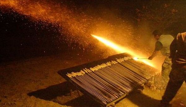 Μία από τις ομάδες που έχει ένα απίστευτο οδόφραγμα που διασχίζει την κοιλάδα, και χρησιμοποιούν πόλους, σκαλωσιές και σανίδες. Το βράδυ, εκτοξεύουν μερικές ρουκέτες για να δοκιμάσουν τη στόχευση. Και μόλις έρθει το σούρουπο ξεκινά… ο πόλεμος!» συμπληρώνει ο φωτογράφος. Μέσα σε λίγες μόνο ώρες, περισσότερες από 100.000 ρουκέτες εκτοξεύονται από τη μία προς την άλλη πλευρά του χωριού, βάζοντας «φωτιά» στο χωριό, πάντα υπό το βλέμμα χιλιάδων επισκεπτών. Στις 11:30 το βράδυ γίνεται εκεχειρία για να εισέλθουν οι πιστοί στις εκκλησίες για την λειτουργία. «Ξεκινούν ξανά αμέσως μόλις μπει ο κόσμος μέσα στις εκκλησίες και σταματούν ξανά λίγο μετά τα μεσάνυχτα για να βγει ο κόσμος» δηλώνει ο Kesseler Ο στόχος των ομάδων είναι να χτυπήσουν την καμπάνα της αντίπαλης εκκλησίας.
