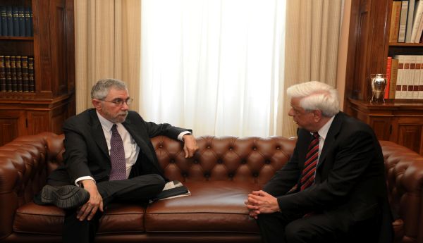 Ειδικότερα, ο κ. Παυλόπουλος είπε: «Η Ελλάδα είναι προσανατολισμένη στην παραμονή της στην Ευρώπη και στην Ευρωζώνη. Θα μείνει στην Ευρωζώνη και οι θέσεις και οι απόψεις σας, ιδίως στο τελευταίο σας βιβλίο «Τέλος στην ύφεση τώρα», μας βοηθούν προκειμένου με τους εταίρους μας να τροποποιήσουμε συγκεκριμένα σημεία του προγράμματος που μας έχει επιβληθεί. Ώστε με τις αλλαγές αυτές να βγούμε επιτέλους στις αγορές και να εξασφαλιστεί η αναπτυξιακή προοπτική της ελληνικής οικονομίας».