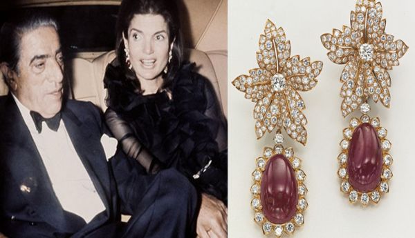 Η Τζάκι Κένεντι Ωνάση, η σύζυγος του Προέδρου των ΗΠΑ Τζον Κένεντι και του μεγιστάνα της Ναυτιλίας Αριστοτέλη Ωνάση, είναι μια από τις πιο εμβληματικές Πρώτες Κυρίες των ΗΠΑ και ο κόσμος της μόδας αναγνωρίζει ως σήμερα το γούστο και τον κοσμοπολίτικο τρόπο ζωής της. Πέντε χρόνια μετά τη δολοφονία του Κένεντι, η Τζάκι παντρεύτηκε τον Αριστοτέλη Ωνάση. Ο Οίκος Christie’s βγάζει σε δημοπρασία ένα ζευγάρι σκουλαρίκια με διαμάντια και ρουμπίνια καθώς και ένα δαχτυλίδι, τα οποία είχε δώσει ο Ωνάσης στην Τζάκι ως δώρο γάμου το 1968. Η αξία του συγκεκριμένου σετ Van Cleef & Arpels υπολογίζεται στα $250,000 με $350,000.