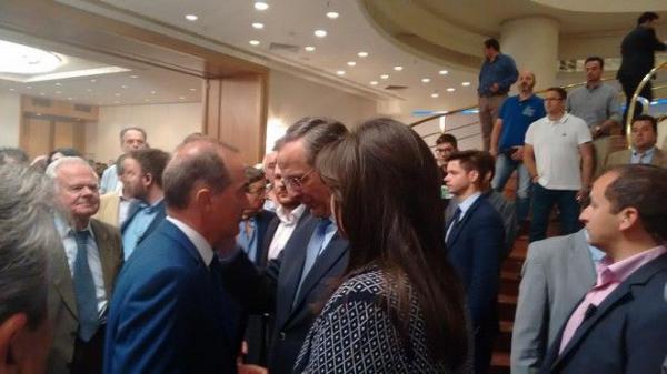 Ο κ. Σαμαράς έφθασε στο Κάραβελ μαζί με τη σύζυγο του Γεωργία. Πολίτες που είχαν συγκεντρωθεί στο χώρο καθώς ο κ. Σαλμάς είχε προβεί σε κινητοποίηση ( γεγονός που σχολίασε ο κ. Σαμαράς ξεκινώντας το χαιρετισμό του με το σχόλιο”, μοιάζει με συγκέντρωση Σάλμα εδώ”) τον πλησίασαν. Ηλικιωμένος κύριος ακούστηκε να του λέει “μην κάνεις πίσω” για να απαντήσει ο πρόεδρος της ΝΔ ” δεν κάνω πίσω με τίποτα”.