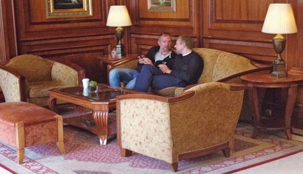 Ο Ντμίτρι Ριμπολόβλεφ, ο Ρώσος δισεκατομμυριούχος επιχειρηματίας και ιδιοκτήτης του Σκορπιού, κάτω από πέπλο μυστικότητας, χθες στη Θεσσαλονίκη. Καθισμένος αναπαυτικά στον πιο απομακρυσμένο καναπέ του λόμπι του ξενοδοχείου «Electra Palace», στην καρδιά της πόλης, χαλαρός, φορώντας μπλε φόρμα, ασορτί μπλούζα και αθλητικά παπούτσια, ένας κοινός θνητός που δεν θύμιζε σε τίποτα τον μεγιστάνα του πλούτου, με την απίστευτη χλιδή και λάμψη.