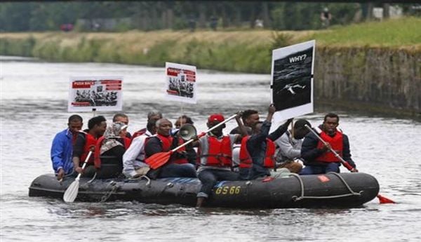 Mία φουσκωτή λέμβος στην οποία επέβαιναν 10 μετανάστες από την Αφρική, έδεσε χθες συμβολικά μπροστά από το Ευρωπαϊκό Κοινοβούλιο στο Στρασβούργο. Ήταν μια πρωτοβουλία οργανώσεων που καταγγέλλουν την «φονική» μεταναστευτική πολιτική της Ευρώπης. Δεκάδες ακτιβιστές συνόδευσαν τη λέμβο στο σύντομο διάπλου της, κρατώντας πλακάτ όπου αναγράφονταν συνθήματα κατά της Frontex. «Πρόκειται για μετανάστες που έχουν έρθει από διάφορες χώρες της Αφρικής, από το Μαρόκο και την Τυνησία, και έφθασαν χθες στο Στρασβούργο» επισήμανε ο Οζάν Τσενελί, ένας εκ των διοργανωτών της κινητοποίησης.