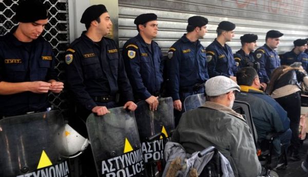 Διαμαρτύρονται ενάντια στην περικοπή συντάξεων και επιδομάτων σε βάρος των αναπήρων από τα Κέντρα Πιστοποίησης Αναπήρων και τις Διευθύνσεις του ΙΚΑ, όπως υποστηρίζουν, στο πλαίσιο των συνολικών περικοπών των κοινωνικών δαπανών που έγιναν τα τελευταία χρόνια.