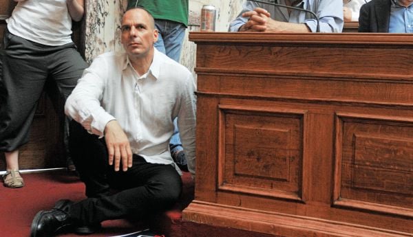 Οταν ο Γιάνης Βαρουφάκης μπήκε στην αίθουσα της Γερουσίας, όπου θα συνεδρίαζε η Κοινοβουλευτική Ομάδα του ΣΥΡΙΖΑ, επικρατούσε το αδιαχώρητο. Πλην των 149 μελών της είχαν πιάσει ήδη θέσεις και κομματικά στελέχη, όπως τα μέλη της Πολιτικής Γραμματείας που δεν είναι βουλευτές. Για τον εκκεντρικό υπουργό Οικονομικών η απουσία κενής θέσης δεν αποτέλεσε πρόβλημα: έπεσε… στα πατώματα, παρακολουθώντας την ομιλία του Αλέξη Τσίπρα οκλαδόν στον κενό χώρο, ανάμεσα στα καθίσματα της πρώτης σειράς. Με το κινητό ανά χείρας, το αναψυκτικό αφημένο στο έδρανο του βουλευτή Ν. Αθανασίου και τα δεκάδες φωτογραφικά ενσταντανέ εξασφαλισμένα.