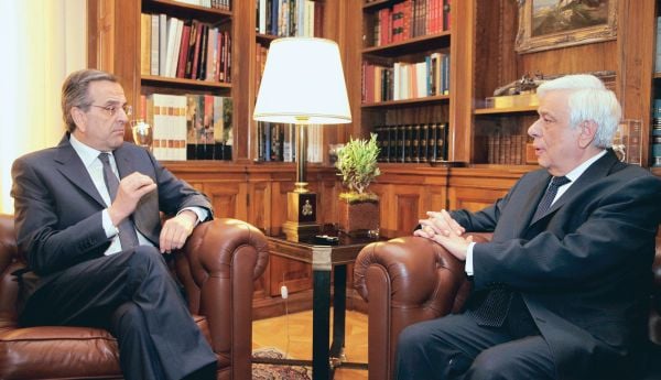 Υποδεχόμενος τον κ. Σαμαρά, ο κ. Παυλόπουλος του είπε πως είναι «βέβαιος ότι θα κάνετε ό,τι σας αναλογεί για την παραμονή της χώρας στην Ευρώπη και στο ευρώ». Και πρόσθεσε: «Μπορεί να ακούγομαι κουραστικός, αλλά πρέπει να το επαναλαμβάνω: Θα διασφαλίσω στο όριο των αρμοδιοτήτων μου την παραμονή μας στην Ε.Ε. και στο ευρώ, γιατί αυτή ήταν η εντολή της Βουλής που με εξέλεξε και του κόσμου που εξέλεξε αυτή τη Βουλή. Να είστε βέβαιος ότι θα το πράξω».