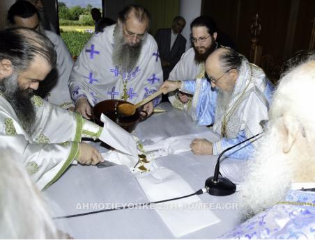 Με το πέρας των Εγκαινίων και κατά την απόλυση της αρχιερατικής Θείας Λειτουργίας ο Σεβασμιώτατος Ποιμενάρχης μας κ. Κοσμάς, αφού ευχαρίστησε όσους κοπίασαν αλλά και προσέφεραν την δυνατότητα να ανεγερθεί ο νέος περικαλλής Ιερός Ναός, ευχήθηκε ανάπαυση στους κεκοιμημένους πέντε αδελφούς μας και έδωσε συγχαρητήρια σ’ όσους συμμετείχαν με ευλάβεια και υπομονή στην μακρά ακολουθία των Εγκαινίων.