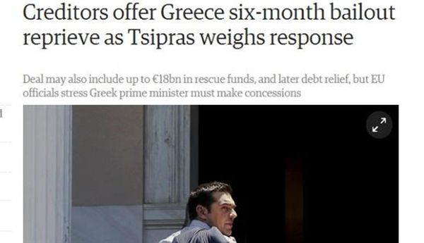 Οι πιστωτές της Ελλάδας στοχεύουν στη σύναψη συμφωνίας για να σταματήσουν το ενδεχόμενο χρεοκοπίας και εξόδου της χώρας από την ευρωζώνη, παρατείνοντας κατά έξι μήνες το πρόγραμμα διάσωσης και χορηγώντας πόρους έως και 18 δισ. ευρώ, σύμφωνα με την βρετανική εφημερίδα Guardian.
