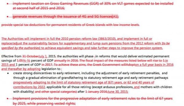 Αυτή την εικόνα έχει το χαρτί με τις ελληνικές προτάσεις που παρουσίασε ο κ. Τσίπρας στους θεσμούς. Κάθε γραμμή και μια διαγραφή ή διόρθωση. Ο Guardian διακωμωδεί το θέαμα: “Οι θεσμοί πετάνε κατάμουτρα στον Τσίπρα το τετράδιο με την έκθεση που έγραψε σπίτι του”… “Οι πιστωτές γουστάρουν ένα γερό ριράϊτινγκ”.