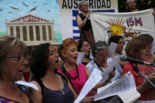 Χιλιάδες άνθρωποι, κρατώντας επιγραφές με το «Όχι» στα ελληνικά και σημαίες με συνθήματα υπέρ της Ελλάδας και κατά των ευρωπαϊκών χρηματοοικονομικών θεσμών, ανταποκρίθηκαν στο κάλεσμα των πολυάριθμων κοινωνικών και πολιτικών οργανώσεων που συνθέτουν την πρωτοβουλία «Αλληλεγγύη προς την Ελλάδα» (Anticapitalistas, ATTAC, CCOO, Economistas sin Fronteras, Izquierda Unida, Marchas de la Dignidad 22M, Marchas a Bruselas, Plataforma de Auditoria ciudadana de la Deuda (PACD), Podemos Madrid, Circulos de Cooperacion Internacional y de Lavapies, USO)