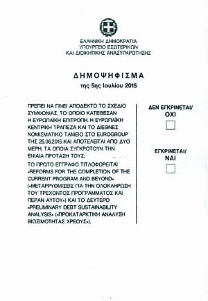 Αντιδράσεις προκαλεί η προχειρότητα της κυβέρνησης στο θέμα του ψηφοδελτίου του δημοψηφίσματος. Κι αυτό γιατί, αφενός, μεν το ερώτημα που περιλαμβάνει είναι γενικόλογο και ακατανόητο, αφετέρου, η επιλογή του «Οχι» προηγείται, αφού είναι πάνω από αυτή του «Ναι» (και όχι στο ίδιο ύψος όπως θα ήταν το σωστό).