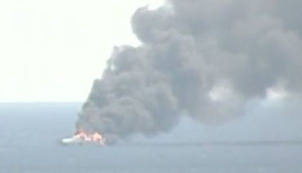 Στο σκάφος σημειώνονται εκρήξεις, ενώ είναι ακόμα άγνωστο εάν υπάρχουν επιβαίνοντες και σε ποια κατάσταση.