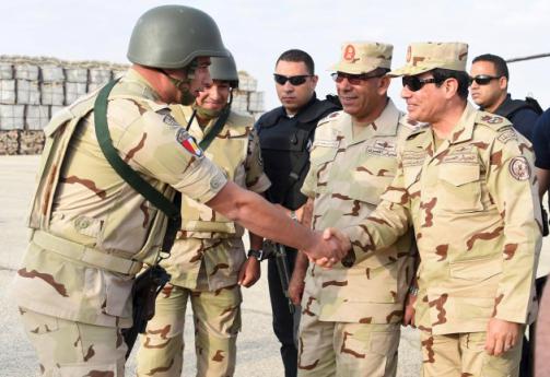 Ο Σίσι επιθεώρησε νωρίτερα μονάδες των ενόπλων δυνάμεων (φωτο) και της αστυνομίας στην Ελ Αρίς, την πρωτεύουσα της επαρχίας, όπως ανακοίνωσε η αιγυπτιακή προεδρία. Ο Σίσι, φορώντας στολή για πρώτη φορά αφότου αναδείχθηκε στην προεδρία πριν από έναν χρόνο, είπε στους άνδρες των μονάδων τις οποίες επιθεώρησε ότι τουλάχιστον 200 εξτρεμιστές σκοτώθηκαν στις εχθροπραξίες των τελευταίων ημερών και πρόσθεσε: