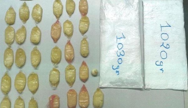 Κατόπιν ελέγχου της Δίωξης διαπιστώθηκε ότι μετέφερε ποσότητα υγρής κοκαΐνης μέσα σε προφυλακτικά (!) και δύο πλάκες στερεάς μορφής κοκαΐνης, συνολικού βάρους 3.442 γραμμαρίων, στην αποσκευή του, μέσα σε τέσσερις νάιλον συσκευασίες που ήταν επιμελώς κρυμμένες στα τοιχώματα της τσάντας. Ποσότητα η οποία, στη συνέχεια, στο λιανεμπόριο λόγω της υψηλής καθαρότητάς της θα έβγαζε πολλαπλάσια σε κιλά κοκαΐνη με μια μέση νόθευση.
