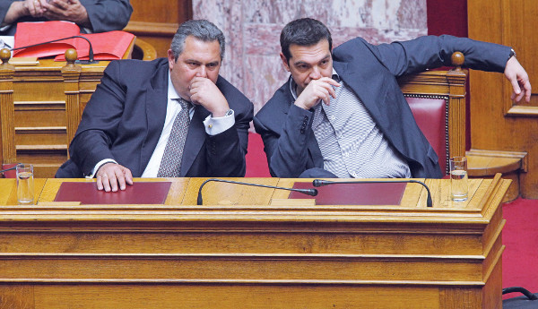 Μόνο πέντε μήνες και ένα Μνημόνιο (το τρίτο) χρειάστηκαν για να γίνει η συγκυβέρνηση ΣΥΡΙΖΑ – ΑΝ.ΕΛ. «σκόνη και θρύψαλα», όπως είχαν γίνει οι Κοινοβουλευτικές Ομάδες τόσο του ΠΑΣΟΚ όσο και της Ν.Δ. όταν χρειάστηκε να ψηφίσουν επώδυνα μέτρα. Το ερώτημα πλέον είναι πόσο θα αντέξει ο πρωθυπουργός Αλέξης Τσίπρας εφόσον, όπως φαίνεται, η πλειοψηφία του θα στηρίζεται σε ψήφους της Ν.Δ., του Ποταμιού και του ΠΑΣΟΚ. Από τους 149 βουλευτές που είχε αναμένεται να χάσει περίπου 30 (που αρνούνται να παραδώσουν τις έδρες τους), δηλαδή 119, ίσως και λιγότερους! Αν σε αυτούς προσθέσουμε και τους 13 των ΑΝ.ΕΛ., τότε συνολικά από τους 162 η συγκυβέρνηση θα έχει μόλις και μετά βίας στο καλό σενάριο 132 ψήφους! Οσο για τον Πάνο Καμμένο, που χθες συναντήθηκε με τον Αλέξη Τσίπρα, δεν ξεκαθάρισε τι θα κάνει και υποστήριξε: «Θα αγωνιστούμε μαζί με τον ΣΥΡΙΖΑ, αλλά δεν μπαίνουμε σε κυβέρνηση εθνικού σκοπού στην οποία θα συμμετέχουν κόμματα που τα έδιναν όλα στους εταίρους». Και πρόσθεσε: «Ο πρωθυπουργός αντιμετώπισε χθες ένα πραξικόπημα. Δέχθηκε εκβιασμό για κατάρρευση τραπεζών και “κούρεμα” καταθέσεων». Ερωτήματα προκάλεσε η δήλωσή του ότι δεν συμφωνεί με τα μέτρα! Σήμερα, πάντως, οι Κ.Ο. του ΣΥΡΙΖΑ και των ΑΝ.ΕΛ. συνεδριάζουν και από αυτές θα εξαχθούν τα όποια συμπεράσματα. Σε εκκρεμότητα είναι και οι παραιτήσεις υπουργών που διαφωνούν με τα μέτρα και θα φέρουν ανασχηματισμό.