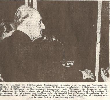 Πολλοί ως σήμερα αμφιβάλλουν αν εκείνη την ώρα ο Γεώργιος Παπανδρέου καταλάβαινε τι είχε «κατά νουν» ο Κωνσταντίνος. Το κατάλαβε όμως μία ώρα αργότερα.