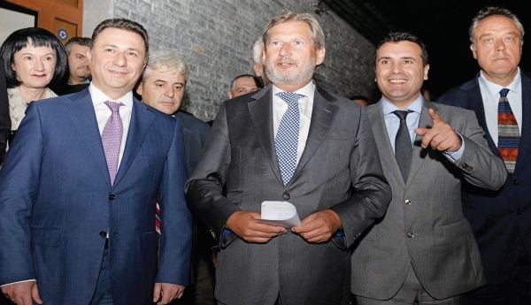 Υστερα από εννέα ώρες διαπραγματεύσεων που κράτησαν όλη τη νύχτα και που παραλίγο να τιναχτούν στον αέρα, όταν ο διαμεσολαβητής, αρμόδιος για τη Διεύρυνση επίτροπος Γιοχάνες Χαν, διαπιστώνοντας αδιέξοδο, ετοιμάστηκε να αποχωρήσει, παίρνοντας πίσω στις αποσκευές του την υπόσχεση για την «ευρωπαϊκή προοπτική της χώρας», οι τέσσερις πολιτικοί αρχηγοί «συνετίστηκαν», παρέκαμψαν όποιες αντιρρήσεις και συναίνεσαν σε ένα σχέδιο για να βγει η χώρα από την πολιτική κρίση.