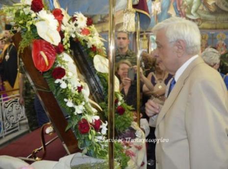 Ο πρώτος πολίτης της χώρας αποχώρησε από το Ναό, λίγο πριν την έξοδο της εικόνας για την καθιερωμένη περιφορά, ενώ ο π. Νικόλαος του πρόσφερε ως ευλογία έναν άρτο και του ευχήθηκε να έχει καρποφόρα αποστολή.